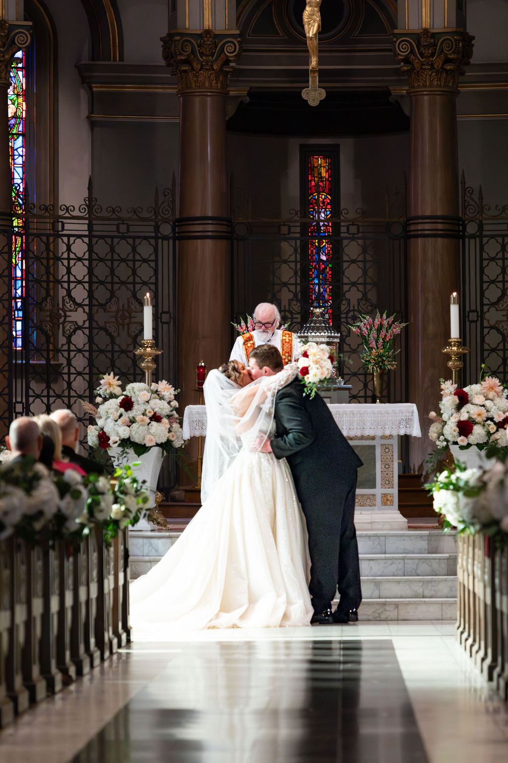 Their wedding ceremony took place in the heart of downtown Richmond at the breathtaking Cathedral of the Sacred Heart, surrounded by family and friends who witnessed a love that stood the test of time. The grandeur of the cathedral, combined with emotional vows and tender glances, created a deeply moving atmosphere filled with meaning and devotion.